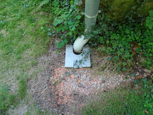 Des traces de débordement ont conduit à déboucher le regard au coin du garage. Un bon volume de feuilles, de sable et de débris de tuiles a été enlevés. Une brosse de 10 cm adaptée sur les tiges de ramonage a permis de déboucher le tuyau d'évacuation dans la rivière mais l'opération devra être renouvelée régulièrement. Le chenaux Nord et Sud de ce bâtiment ont été curés |