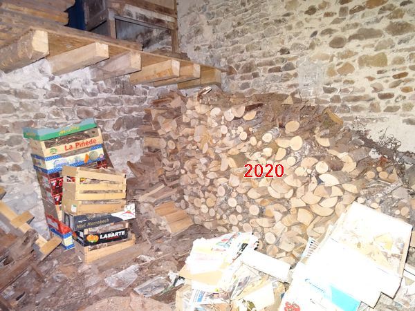 Le bois a été stocké le long du mur Est de la première salle du moulin. Le bois à utiliser en priorité se trouve le long du mur Ouest de cette même salle. |
