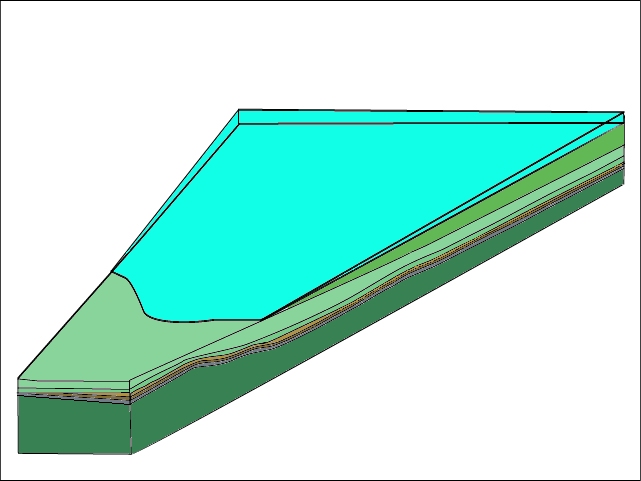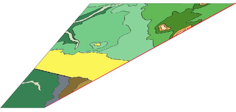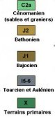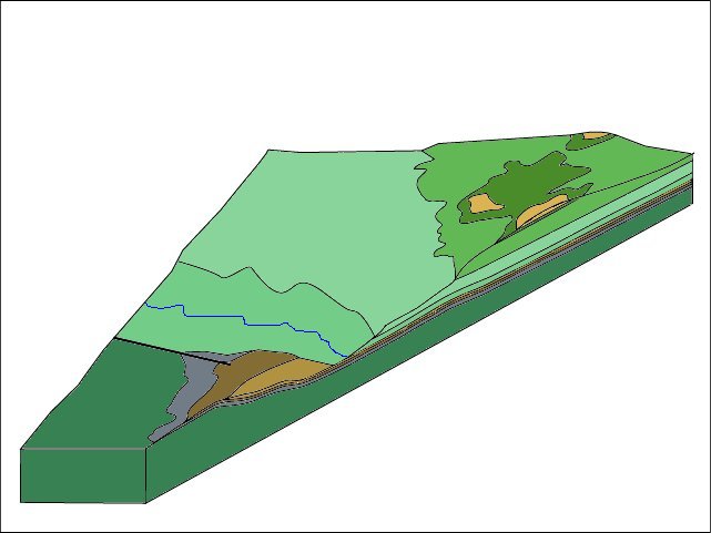 Pour passer de cette carte géologique simplifiée à une vue en perspective à partir d'un point situé au sud ouest, cliquez sur suite. |