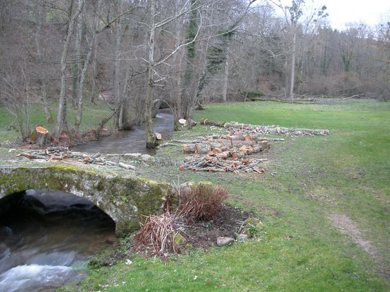 Le bois L'élagueur a fini le travail fin novembre. Il a même été plus loin que la commande en suivant les injonctions de l'EDF. L'érable et l'aubépine du pont ainsi qu'un partie du charme en ont fait les frais. Il ne reste plus qu'a rentrer le bois ... |
