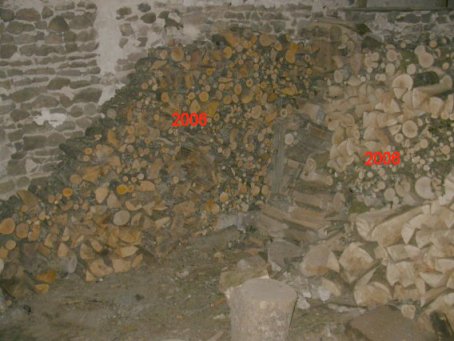 | Rangement du bois et chauffage Le rangement du bois a été modifié dans la première salle du moulin.
