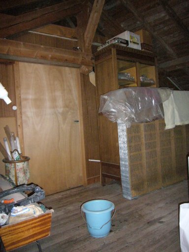 | Réfection des toitures Le couvreur a promis de passer la première semaine de novembre pour réparer la fuite dans le toit de la grande maison. En attendant, la fin de la facture n'est pas payée. Bien remettre le seau à cette place pour éviter des fuites plus gênantes. |
