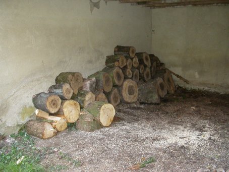 Bois de chauffage "Le tas des infendables" a été réduit et le produit entreposé dans la partie sud de la mangeoire de la remise. |