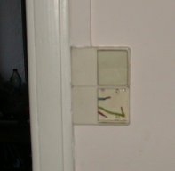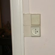 Grillée lors de l'utilisation d'un chauffage électrique et laissée dans cet état, la prise à droite de la porte dans la salle à manger a été réparée en puisant dans les stocks qui par chance contenaient une prise du même modèle. |