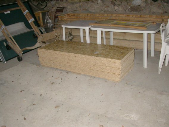 Plancher au dessus de la roue dans le moulin Les dalles d'OCB ont été achetées mais faute d'outils et de matériaux pour le calage sur les poutres, ce chantier est reporté aux vacances de printemps. Déroulement prévu : |