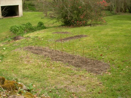 Jardinage Le petit jardin a été bêché et des salades plantées. Dans le grand jardin, des framboisiers nouveaux ont été plantés et les anciens ont été taillés. Le buis a été taillé. |