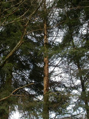 | Un des épicéas en bordure de la route du calvaire est mort.