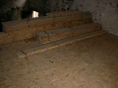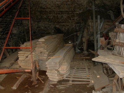 Les billes de fresne, stockées dans la seconde grange, ont continué leur migration vers le plancher haut du moulin.