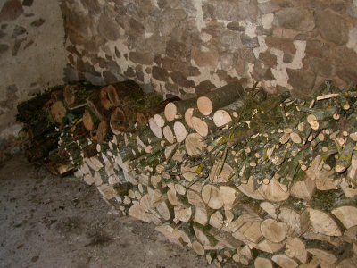 Le bois de chauffage issu de la campagne 2009-2010 est stocké dans la cabane à outils. |