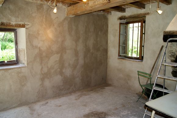 La couche finale d'enduit à la chaux du fournil a été mise en place sur le mur ouest. L'enduit est donc fini. Reste à faire : - installer les prises électriques et le panneau mural de connexion, |