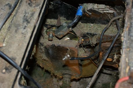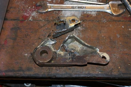 | Le renvoi de mouvement du levier d'embrayage de lame, ressoudé il y a quelques années, a lâché. La pièce de remplacement était disponible dans les stocks du moulin et la réparation a pu être faite.