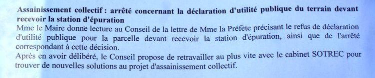 | Vu sur le panneau d'affichage municipal : Reste à savoir quel sera le projet suivant en espérant qu'il ne nous obligera pas à installer une station de refoulement.
