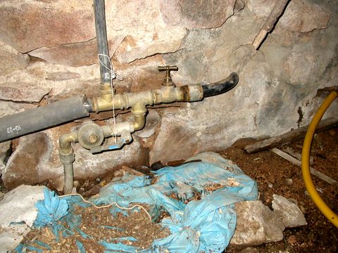 | Il a été fait appel à un plombier pour changer la tête du robinet d'arrêt de la conduite vers la vieille maison et resserrer le raccord UO. Cela ne fuit plus ! |