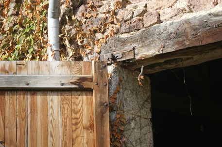 | L'un des tirefonds de gond supérieur du vantail gauche de la première grange était cassé, le gond a été repercé et le tirefond changé. | ![]() |