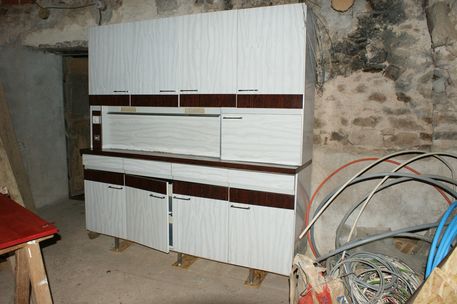 Le buffet en formica a été placé dans l'atelier. |
