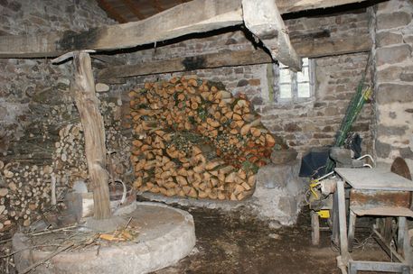 | Le bois 2012 est stocké au fond de la seconde salle du moulin. | ![]() |