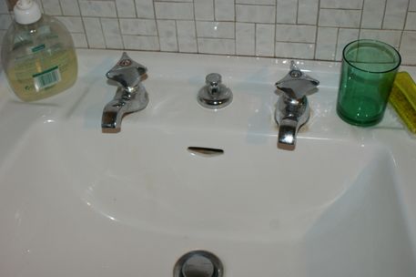| Les deux tampons des robinets du lavabo de la grande maison ont été changés. |