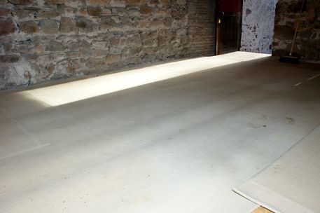 | Le plancher en OSB de la soupente a été fini, le congé en mortier de chaux réalisé et la moquette réinstallée.