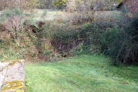 | Les végétaux près de l'entrée latérale de la grande maison ont été recépés. Les broussailles d'août et de septembre ont été brûlées.