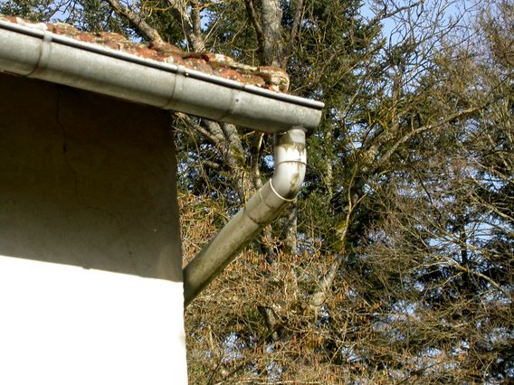 | La brasure à la naissance du tuyau de descente au coin du squat a lâché. En attendant un changement complet de cette gouttière, il faudra mettre un mastic d'étanchéité par temps sec ce qui n'était pas le cas lors de ce séjour. | ![]() |