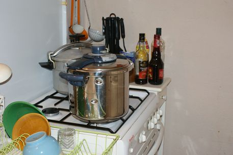 | Une nouvelle cocotte minute est arrivée accompagnée d'un nouveau four micro-onde. L'ancien a traversé la rivière. | ![]() |