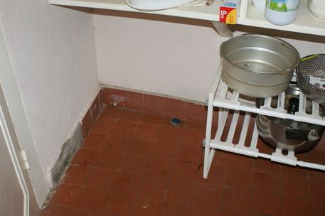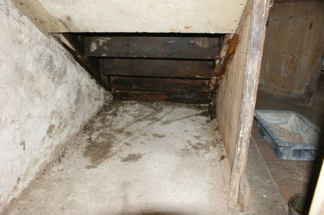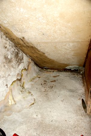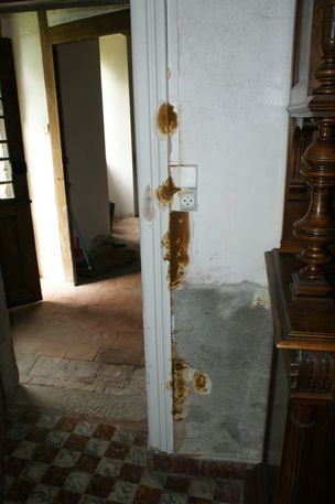 | L'humidité très importante a favorisé une attaque massive champignons de part et d'autre du mur de refend de la vieille maison.
