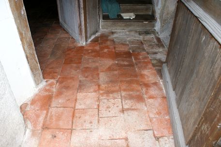 | Tous les carrelages anciens de la vieille maison ont étés traités au vinaigre blanc et badigeonnés avec un produit à base d'huile de lin. La quantité de crasse retirée était impressionnante mais il en reste.