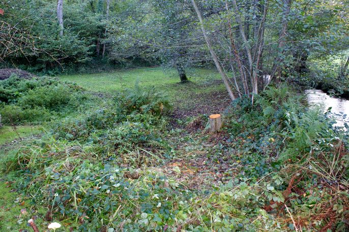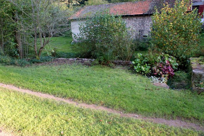 Le mur de soutènement le long de la rivière a été nettoyé sur ses deux faces et sur toute sa longueur. Le massif au coin du pont a été débroussaillé ainsi que le coin de ronces à la sortie du pont près de la meule couchée (désolé pas de cliché valable). Le petit jardin et l'escalier du perron de la vielle maison ont aussi été nettoyés. Les bords des trois prairies ont été débroussaillés. |