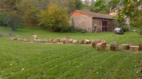 Un frêne sur la rive gauche de la Teyssonne, un aulne sur la rive droite près du pont et un noisetier près du petit jardin ont été abattus et débités. 7 stères de bois ont été stockés au fond de la remise et le long du mur Est de la première salle du moulin. Tous les cageots disponibles ont été remplis de petit bois.