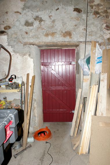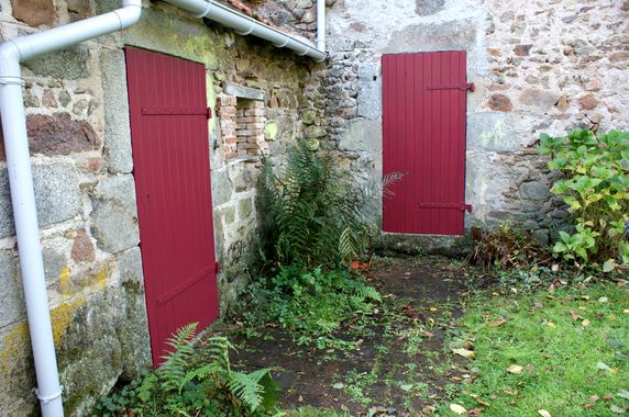 La porte de la remise à outil/toilette sèche a été peinte à l'extérieur. Celle de l'atelier sur ses deux faces.