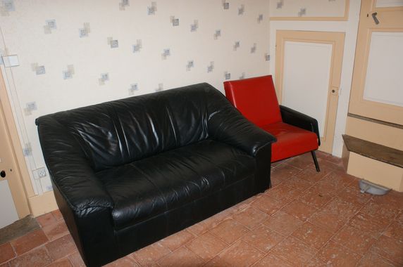 Un canapé a remplacé le futon dans la petite pièce à mi-étage. Ce dernier est stocké dans le cagibi.