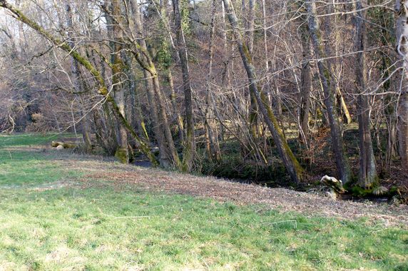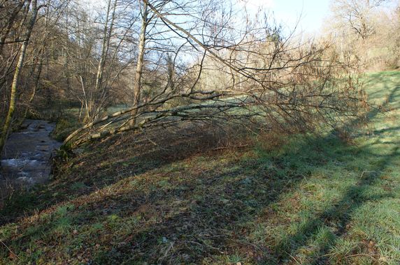Un frêne qui surplombe à la fois le béal et la Teyssonne et qui dépasse dans le premier pré.