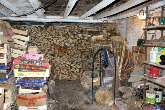 Le chêne et le noisetier ont été stockés au fond à droite dans la remise. Le seul bois sec sur la rive gauche se trouve dans l'auge de la remise. Pour la rive droite le bois à prendre en priorité est celui qui est stocké dans la remise à outils/toilettes sèches. |