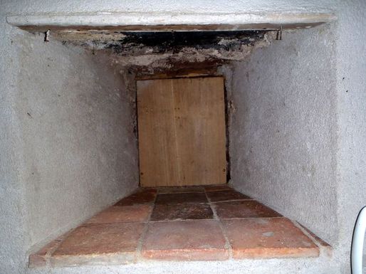 | Les deux conduits du pignon ouest de la grande maison on été ramonés. La vis d'une des trappes ayant résisté à tous les outils de desserrage, la trappe a été changée. Il a été récolté environ 100 litres de suie. |