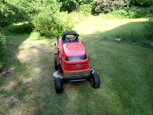 Le capot de la tondeuse ayant subit un "bump" intempestif, il a été refixé et pourvu d'une calandre métallique de renfort.