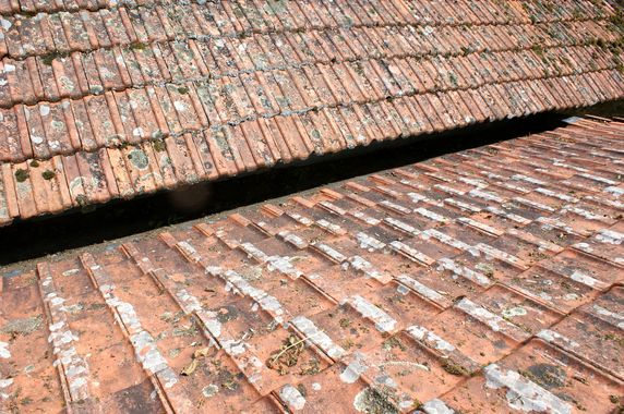 | Suite à des fuites, quelques tuiles du toit de la grange on été changées. La toiture de la deuxième salle et de l'atelier du moulin a été nettoyée. La noue a été vidée. Une tuile a été changée et deux autres, scellées par le faîtage, ont été mastiquées. La toiture des toilettes sèche a été démoussée et trois tuiles ont été changées