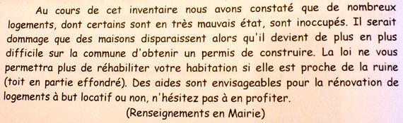 Un certain nombre de tuiles du poulailler ont été remises en place mais le voligeage est vraiment très fatigué. Voir à ce propos le paragraphe trouvé dans le bulletin municipal. Une commission municipale ayant entrepris un plan de nommage de toutes les voies de Saint Bonnet en vue d'une numérotation des maisons, ses membres ont été amenés à visiter tous les lieux-dits de la commune.