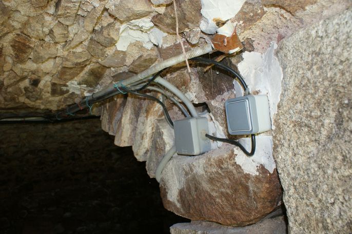 | Le système d'éclairage des deux caves de la grande maison a été refait. Il dépend du même fusible que l'éclairage de la grange. |