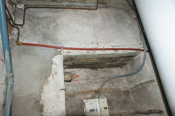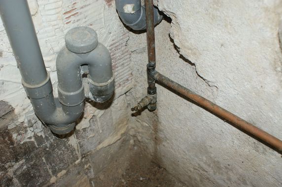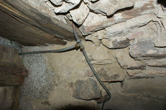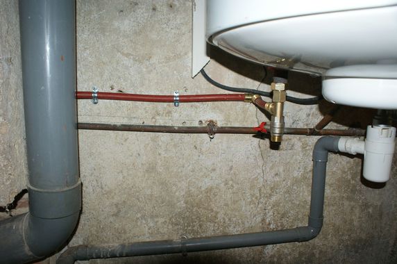 Deux points de purge n'ayant pas été ouverts en novembre le gel a fait son oeuvre dans la vieille maison. Pour l'eau froide il a suffi de resserrer les écrous du té l'entrée de la cave. Il est indispensable de purger l'eau froide en ouvrant le robinet de puisage situé dans la cave. Pour l'eau chaude la brasure du té situé au-dessus du robinet de purge du mur nord a lâché. Le circuit a été remanié avec du PER. Ce point de purge est donc reporté sous le chauffe-eau, ce qui facilitera la vidange au début de l'hiver.