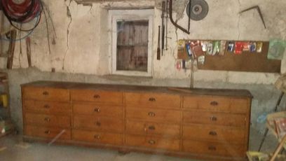 | Le meuble à 16 tiroirs en provenance d'Angers a été installé dans l'atelier.