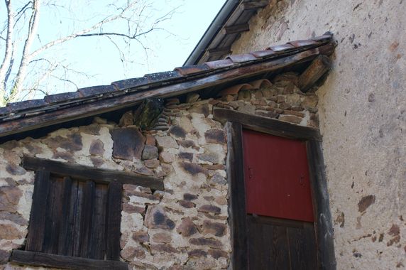 | Les tuiles de rive du fournil ont été remplacées et collées au mastic spécial. |