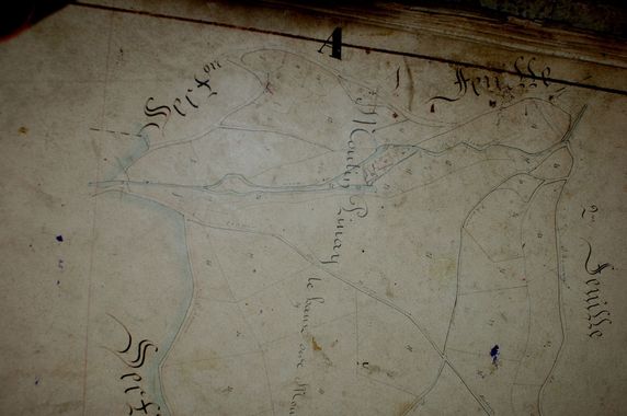 | Le cadastre de 1831 a pu être consulté à la mairie. Il montre qu'à cette époque seule la vieille maison et le moulin existaient. L'accès se faisait par le gué car le pont n'existait pas. |