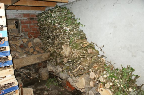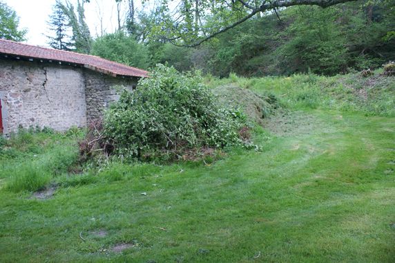 . Le bois est stocké au fond de la première remise. Les branchages peuvent être brûlés jusqu'au 30 juin après le dépôt d'une demande de dérogation pour écobuage. |