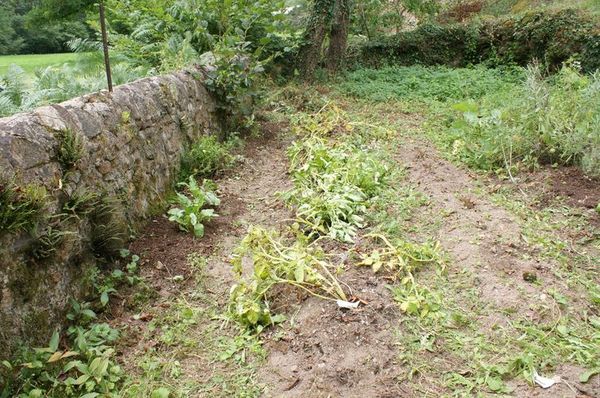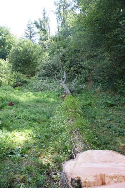 Pour installer la fibre optique, la Cegélec a demandé le débroussaillage de la zone située sous la ligne électrique. Il a été réalisé jusqu'à la limite de la propriété. Les broussailles ont été entreposées en bordure du second pré. Elles seront brûlées après le premier octobre. La rocaille, le perron de la vieille maison, le petit jardin, le béal, le bord de rivière et le talus entre les deux prés ont été nettoyés. |