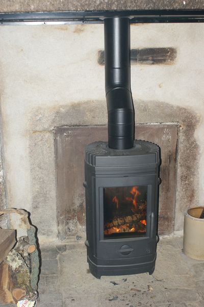 Le nouveau poêle a été testé. Il chauffe très correctement la salle noire et même les deux chambres au-dessus. Il ne faut utiliser que des bûches courtes. Pour l'allumage fermer l'arrivée d'air secondaire au-dessus du foyer. Ouvrir en grand la prise d'air basse. Dès que les bûches sont bien enflammées, ouvrir l'arrivée d'air secondaire, fermer la prise d'air inférieure et la rouvrir d'un seul tour.
