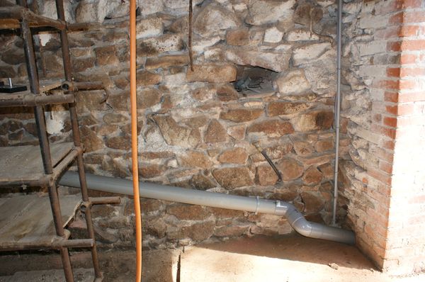 Un ouvrier de l'entreprise Berger est venu forer 5 trous dans les murs à la carotteuse diamantée (qui a mourru). Chaque trou a demandé 2 heures de travail car le granit est très dur. Le réseau d'eau pluviale a été totalement séparé