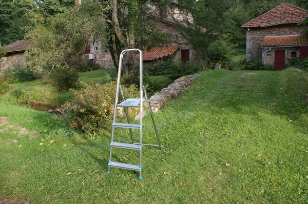 Un petit escabeau a été acheté. Il est ici placé pour pouvoir monter sur le pont.
