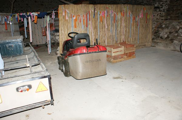 La batterie de la tondeuse a été mise à l'abri.