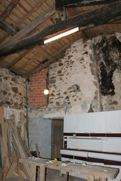 Le volet de la petite fenêtre de l'atelier a été poncé et partiellement peint. Il reste à passer une couche de finition à l'extérieur et 2 couches à l'intérieur.