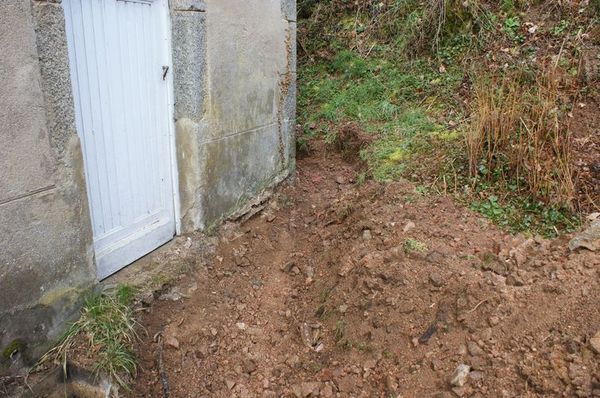 L'entreprise Berger a posé la canalisation de refoulement entre la cave ouest de la grande maison et le tabouret de raccordement au réseau d'assainissement collectif. Le chemin a été décapé et nivelé. Par la même occasion les fils électriques de l'éclairage extérieur ont été à nouveau coupés. Cet éclairage ne fonctionne que sur la rive gauche. Il ne sera réparé qu'après la pose de la pompe de la vieille maison. La pompe de refoulement a posée et raccordée électriquement avec un interrupteur bipolaire. Un disjoncteur spécifique commande toute l'électricité des caves. Les tranchées extérieures ont été creusées par l'entreprise. Le tas de sable est destiné à protéger les canalisations enterrées à l'extérieure.